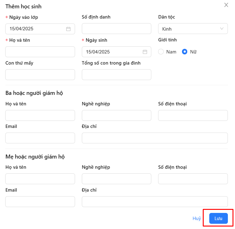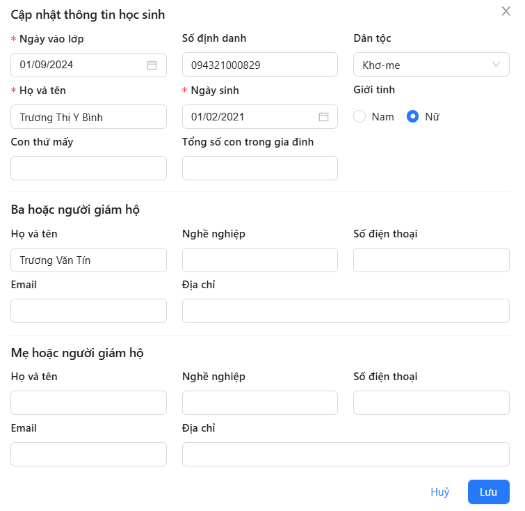 Bước 2: Nhập các thông tin học sinh cần sửa tương ứng.